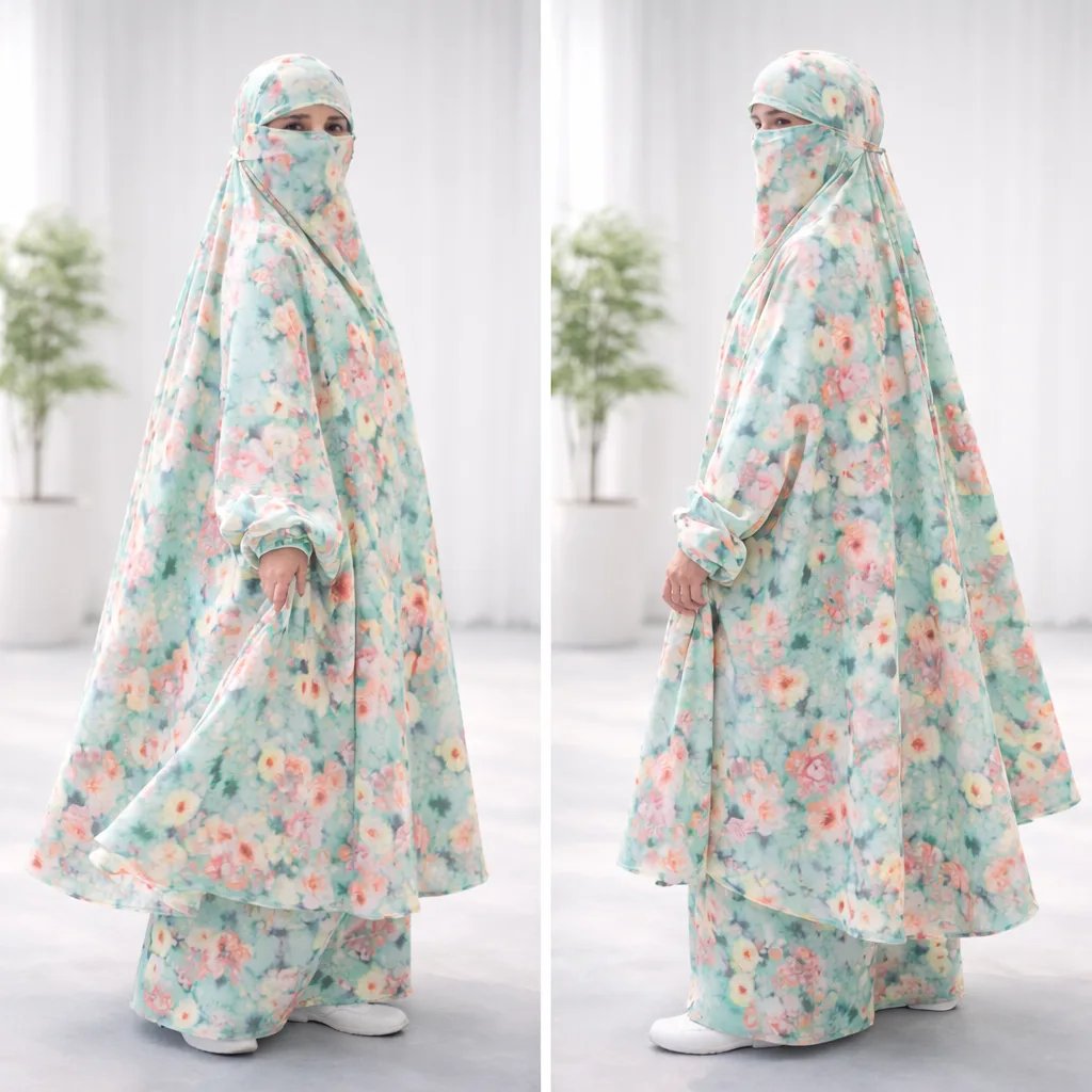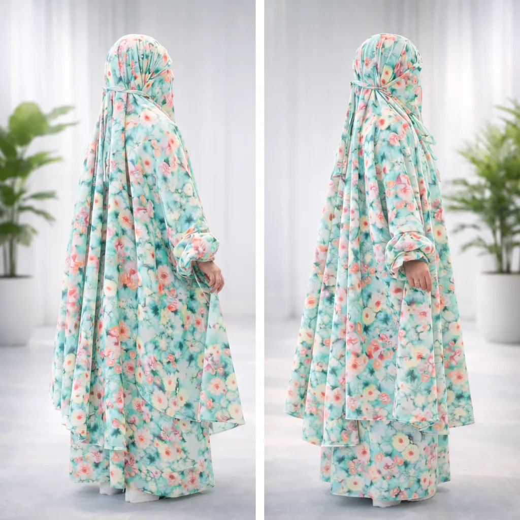 🔹 টু-পিস সেট – খিমার + ম্যাচিং গাউন, দুটোই এলিগেন্ট লুক নিশ্চিত করে।